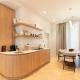 Každý apartmán nabízí výhled do klidného vnitřního dvora a je vybaven pracovním stolem i televizí s plochou obrazovkou. Součástí je vlastní koupelna se sprchovým koutem nebo vanou a základními toaletními potřebami jako šampon. Hosté mají k dispozici ručníky, ložní prádlo i možnost dětské postýlky podle potřeby. Všechny jednotky jsou vytápěné a zároveň klimatizované pro maximální pohodlí.