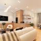 Některé apartmány disponují kuchyňským koutem vybaveným lednicí, varnou deskou, troubou, mikrovlnnou troubou i myčkou nádobí. Nechybí ani rychlovarná konvice či kávovar pro přípravu oblíbeného nápoje. K relaxaci slouží posezení uvnitř bytu a praktickým doplňkem je také žehlička s žehlícím prknem.