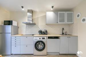 Inside, you’ll find two cozy bedrooms alongside a living room equipped with a flat-screen TV. The kitchen is fully fitted and includes a dining area perfect for meals at home. Two bathrooms feature walk-in showers and come with essentials such as free toiletries and a hairdryer. A washing machine adds convenience during longer stays.