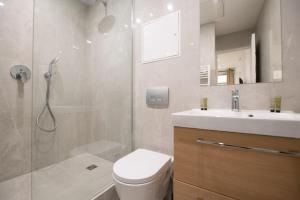 V koupelně najdete sprchový kout typu walk-in a fén na vlasy, hosté ocení bezplatné toaletní potřeby i praktický koš na odpadky. Ložní prádlo tvoří peří z přírodních materiálů doplněné o antialergenní polštáře bez peří.