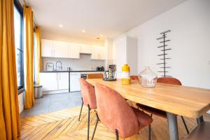 Apartmány mají samostatný vstup a podlahy z parket nebo dlažby s mramorovým vzhledem. Každý prostor nabízí plně vybavený kuchyňský kout se spotřebiči jako myčka, trouba, mikrovlnná trouba, toustovač i kávovar spolu s rychlovarnou konvicí. V jídelní části najdete pohodlnou pohovku a stůl ideální pro společné chvíle.