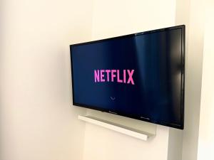 Inside, the apartment features free Wi-Fi throughout and a comfortable living space with heating and large windows framing urban vistas. The sleeping area includes fresh linens, ample storage with a wardrobe or closet, and a clothes drying rack for added convenience.