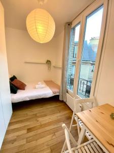 Apartmán je vybaven bezplatným Wi-Fi a nabízí příjemné vytápění pro chladnější dny. Z oken se otevírá panoramatický pohled na pařížské střechy a ulice. Součástí pokoje je televizor a vlastní koupelna se základními toaletními potřebami včetně fénu.