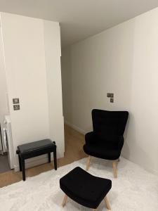This non-smoking apartment features a fully equipped kitchen with a microwave and coffee machine, a seating area with a flat-screen TV that includes streaming platforms, and free Wi-Fi throughout. The bedroom includes towels, bed linen, and a dressing room for convenience. The bathroom provides both a walk-in shower and bathtub options.