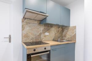 The apartment’s kitchen comes fully equipped with an oven, refrigerator, coffee machine, and wine glasses-perfect for preparing meals or enjoying a quiet drink. A separate dining area complements the living space where you can relax while watching flat-screen TV.