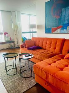 The accommodation features one bedroom alongside a spacious living area equipped with a satellite TV for your entertainment. A separate kitchen comes fully fitted with modern appliances including a dishwasher, oven, and coffee station to prepare meals at your convenience. Two bathrooms provide both bathtubs and showers as well as hairdryers for added comfort.