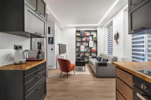 The apartment’s kitchen comes fully equipped with an oven, toaster, coffee machine, and all essential utensils to prepare your meals with ease. Additional conveniences include a washing machine as well as an iron and ironing board.