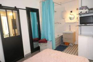El alojamiento cuenta con una habitación principal que se abre hacia un patio privado y una terraza perfecta para relajarse al aire libre. La cocina integrada dispone de horno, microondas, placa eléctrica y todo lo necesario para preparar comidas caseras. También incluye lavadora para mayor comodidad durante estancias prolongadas.