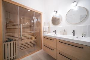 Wellness amenities include a private sauna and relaxation area designed to help guests unwind after exploring the city. Safety measures such as surveillance cameras, smoke detectors, and fire extinguishers are in place throughout the property.