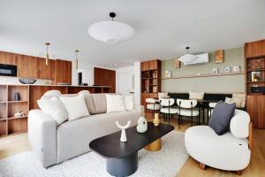 Appartamento ampio e moderno con tre camere da letto, bagni puliti e cucina ben attrezzata. Letti comodi con biancheria inclusa e asciugamani di qualità. Pulizia impeccabile e finiture di pregio in tutto l’alloggio. Ospite disponibile e sempre pronto a rispondere, ha permesso anche di lasciare i bagagli prima del check-in durante le pulizie. Vista spettacolare sulla Torre Eiffel dal palazzo, zona tranquilla nonostante la vicinanza all’ambasciata. Ristoranti, panetterie e stazioni della metro raggiungibili a piedi, Arc de Triomphe e Champs Élysées erano vicini.