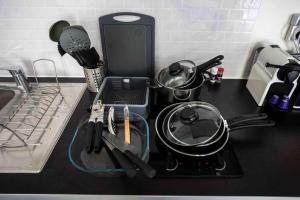 This non-smoking apartment features one bedroom and a fully equipped kitchenette with a microwave, toaster, stovetop, coffee and tea maker. The living area includes a fan for comfort while heating is available throughout. A washing machine is provided for convenience.