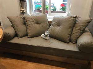 Inside, the air-conditioned space features one bedroom and a cozy living area alongside a fully equipped kitchen complete with modern conveniences such as a dishwasher and coffee machine. The bathroom offers both a bathtub and shower plus essentials like shampoo and soap for your comfort. Throughout the apartment, wooden floors add warmth while heating ensures coziness during cooler days.