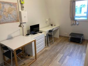 The apartment is equipped with modern conveniences including complimentary Wi-Fi throughout, a flat-screen TV with cable channels, and a kitchenette fitted with essentials like a refrigerator, microwave, dishwasher, and electric kettle. Laundry needs are covered by an in-unit washing machine while the bathroom offers either a shower or bathtub along with fresh towels provided for your comfort. Guests are welcomed with complimentary chocolates or cookies upon arrival.