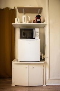 Мини-кухня оборудована микроволновой печью, тостером и холодильником - всё необходимое для самостоятельного приготовления лёгких блюд. В ванной комнате можно принять душ или ванну, также там есть фен и набор средств по уходу за волосами: шампунь и кондиционер. Для дополнительной гигиены предоставлен антисептик для рук.