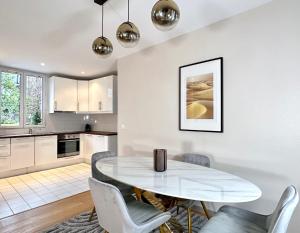 Inside, you'll find a bright living room featuring a TV with cable channels, perfect for relaxing after a day of sightseeing. The fully equipped kitchen includes modern appliances such as a dishwasher, oven, and electric kettle, making meal preparation convenient. A well-appointed bathroom comes stocked with essentials like shampoo and a hairdryer. Fresh towels and bedding are provided for your comfort.