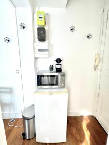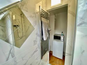Located just a short walk from the Arc de Triomphe, this private studio apartment offers a cozy retreat in Paris’s 17th arrondissement. The space features a comfortable sleeping area and a bathroom with a modern shower. A kitchenette is equipped with essentials including a microwave and refrigerator, perfect for preparing light meals.