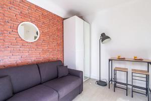 Inside, the apartment offers a fully equipped kitchen with a microwave and refrigerator alongside a washing machine. The living area contains a sofa bed and a table, while heating ensures comfort throughout the space. The private bathroom features towels and a shower.
