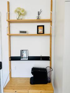 Inside, the apartment offers a comfortable bedroom alongside a fully equipped bathroom stocked with fresh towels and linens. The kitchenette includes essentials such as a microwave, electric kettle, and coffee maker-perfect for preparing light meals or morning brews. A washing machine adds convenience for longer stays.