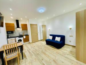 La zona giorno dispone di un angolo cottura attrezzato con forno tradizionale e microonde oltre a bollitore elettrico ed espresso per preparare bevande calde in totale autonomia. Un tavolo da pranzo invita a gustare pasti fatti in casa comodamente all’interno dell’alloggio.