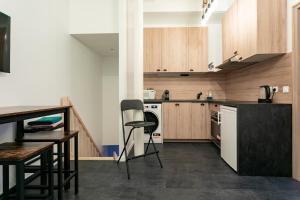 L'appartamento dispone di un soggiorno con TV a schermo piatto e divano letto, oltre a una cucina completamente attrezzata con lavastoviglie, frigorifero, bollitore elettrico e zona pranzo. Le camere da letto sono caratterizzate da pavimenti in legno o parquet e offrono comfort come riscaldamento e asciugamani. Il bagno privato è dotato di vasca o doccia.