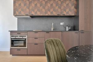 The apartment features a fully equipped kitchen including an oven, microwave, and stovetop for self-catering. Guests can relax in the seating area with satellite flat-screen TV and enjoy free Wi-Fi throughout the space. The sleeping area provides individually controlled air conditioning and heating. The bathroom includes both a bathtub and shower.
