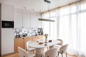 Hosté mohou využít rychlé Wi-Fi připojení po celém prostoru bytu a v relaxační části si užít sledování televize na ploché obrazovce nebo si připravit kávu ve vyhrazeném koutku s kávovarem. Ložní prádlo zahrnuje polštáře bez peří pro zdravější spánek.