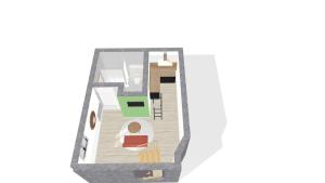 Apartmán disponuje plně vybavenou kuchyní s troubou a mikrovlnnou troubou, součástí je také vlastní koupelna se sprchovým koutem a fénem na vlasy. K vybavení obývacího prostoru patří základní potřeby jako ručníky, povlečení, topení a ventilátor pro pohodlí hostů. Pro zábavu slouží televize, pracovní potřeby lze uspokojit u stolu.