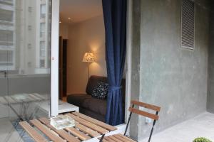 Жильё представлено студиями с собственным балконом и апартаментами с отдельной спальней. Каждая квартира оборудована кухней со столом, духовкой и кофемашиной, а также включает гостиную зону и ванную комнату.