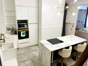 L’alloggio comprende una camera da letto confortevole, un soggiorno accogliente e una cucina separata completamente attrezzata per ogni esigenza culinaria. Sono presenti tre bagni che garantiscono comodità anche per gruppi numerosi o famiglie. Il clima interno è regolato da aria condizionata e riscaldamento per assicurare un soggiorno piacevole in qualsiasi stagione dell’anno. L’appartamento è rigorosamente non fumatori.