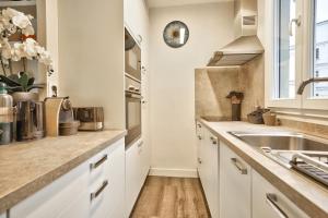 This one-bedroom apartment includes a kitchen equipped with a dishwasher, oven, microwave, and washing machine. The living area has air conditioning, a sofa bed, a desk, and a flat-screen TV with streaming services available. The bathroom contains a walk-in shower along with towels, slippers, conditioner, and a hairdryer provided for guest convenience. Central heating ensures comfort year-round.