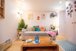Inside, the apartment offers a comfortable living room featuring a flat-screen TV and heating to keep you cozy during cooler evenings. The fully equipped kitchen includes essentials like a toaster and washing machine for added convenience during your stay. A modern bathroom complements the space, with fresh towels and linens provided for your comfort.